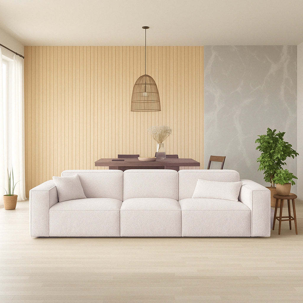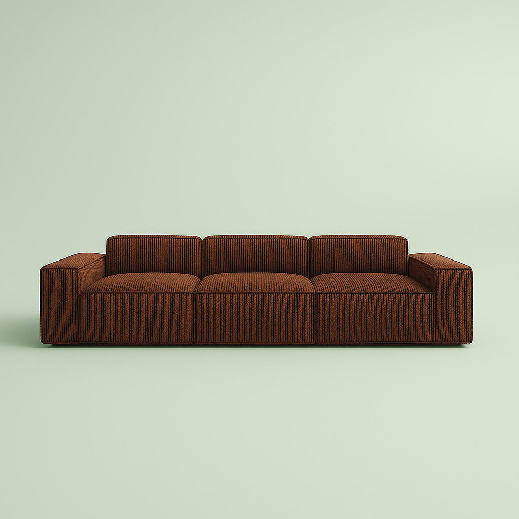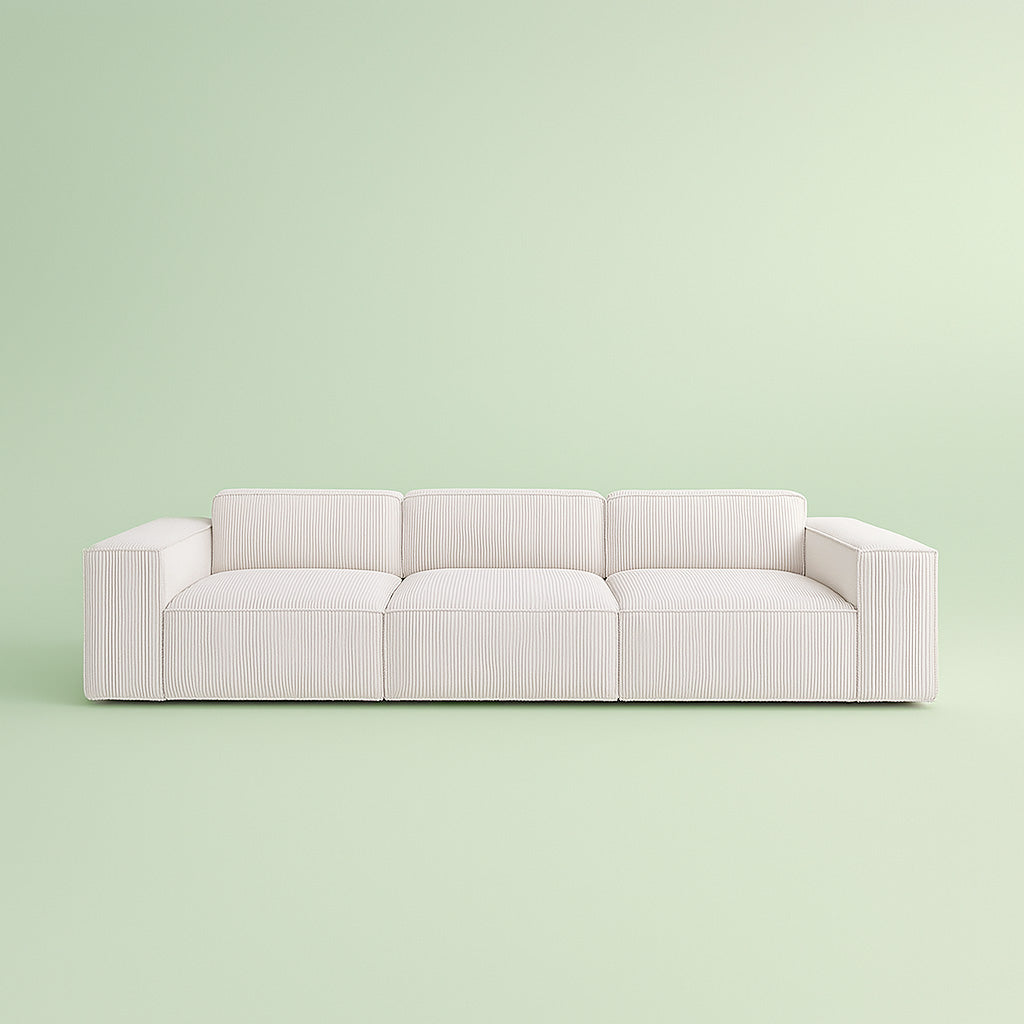 Exquisite Fabric Selection: Upholstered in luxury Corduroy fabric, the Aria Sofa offers a soft, breathable, and durable surface that's resistant to pilling and wear.