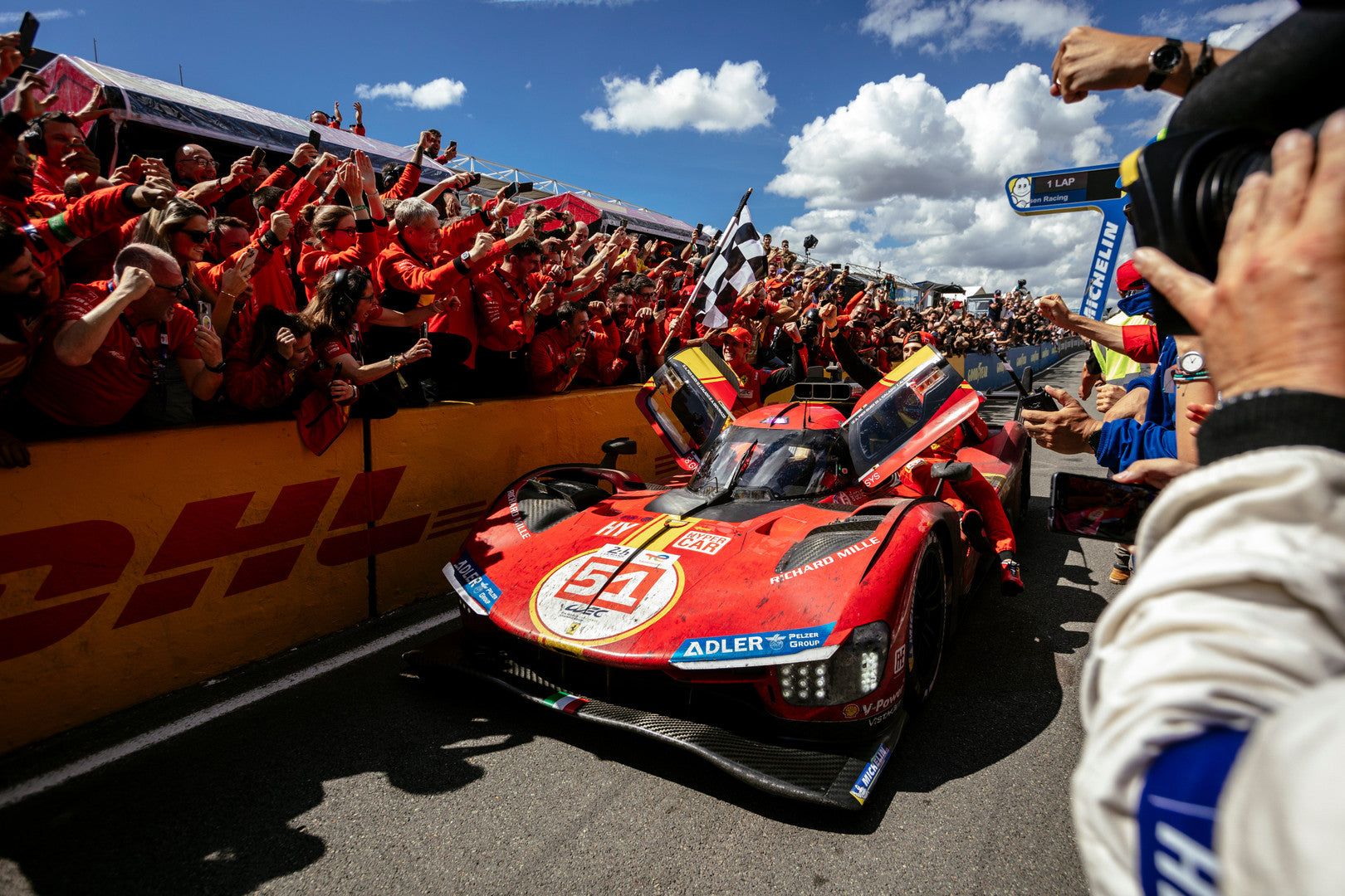In 2025, the #51 and #50 crews remained unchanged, while Phil Hanson replaced Robert Shwartzman in the #83 team. The season started perfectly in Qatar, with the #51 crew claiming the Hyperpole. They maintained control for the first few hours, until a string of penalties relegated them back into the pack, allowing the #50 and #83 Ferraris to battle for the lead. Ultimately, Fuoco produced a stellar stint to overhaul the privateer entry and claim victory for the #50. The #51 showed resilience, fighting back to claim the final podium place, marking Ferrari’s first top three lockout since the 1,000 Kilometres of Österreichring in 1972. In Imola, the #51 secured pole for a second straight race, with the #83 starting second. The #51 controlled the early stages but two disruptive safety car periods kept the fight for victory wide open into the latter stages. The #51’s decisive move came in the final 30 minutes as Pier Guidi pitted for fuel, saving crucial seconds and rejoining just ahead of their rivals from BMW and Alpine. He held firm to the finish, clinching victory in front of a passionate home crowd of Tifosi, and giving the #51 car its first WEC win since Le Mans in 2023. The #83 finished in fourth place. At Spa, after a dominant qualifying performance, the #50, #83, and #51 cars lined up as the front three on the grid. Despite fierce competition, especially from Alpine, the #51 and #50 achieved a 1-2 finish, securing Ferrari's third consecutive win of the season. Ferrari arrived at Le Mans as favourites following their recent successes, but results from qualifying were less than ideal: the #50, #51 and #83 started seventh, eleventh and thirteenth respectively. This time, it was the #83 that would prevail, earning Ferrari their third successive Le Mans victory with a third different car. Kubica became the first Polish driver to win at Le Mans, Ye the first Chinese racer, while Hanson would become the 35th British driver to achieve victory at La Sarthe. The #51 claimed third position, as only the #6 Porsche and a technical infringement for the #50 stopping the Scuderia from claiming all three spots of the podium.