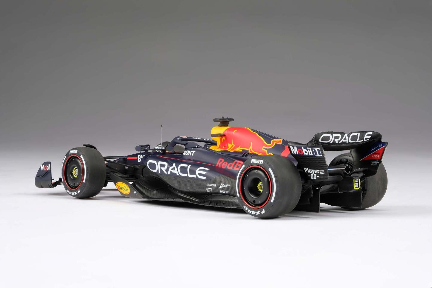 As raced by Max Verstappen and Sergio Pérez during the 2023 FIA Formula One World Championship seasonEach model hand-built and assembled by a small team of craftsmen1:18 scale model, over 31cm/12in longMade using the finest quality materialsOver 800 hours to develop the modelPrecisely engineered parts: castings, photo-etchings and CNC machined metal componentsBuilt using original CAD designs and paint codes supplied by Oracle Red Bull RacingBuilt to retain Oracle Red Bull Racing both the World Drivers’ and World Constructors’ titles for the first time in a decade, the RB19 is Milton Keynes’ competitor for the 2023 FIA Formula One World Championship. Driven by the reigning World Champion Max Verstappen and Sergio Pérez, teammates for the third consecutive season, the RB19 is already on the march to another title double, with Oracle Red Bull Racing scoring more than twice the points of their closest competitors.