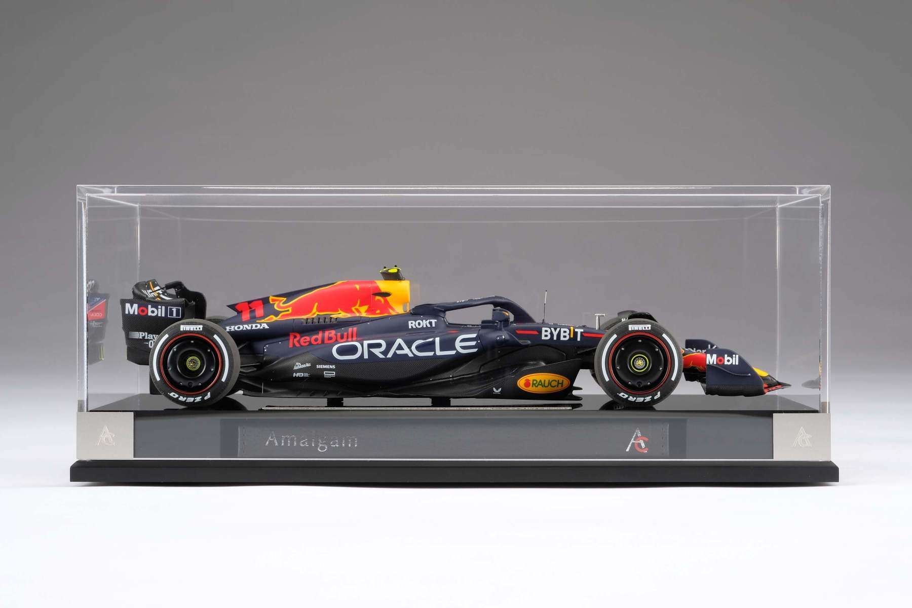 This fine 1:18 scale model is of the Oracle Red Bull Racing RB19 as raced by Max Verstappen and Sergio Pérez during the 2023 FIA Formula One World Championship. This model has been handcrafted and finished in our workshops utilising the original CAD data, finishes and paint codes supplied directly by Oracle Red Bull Racing. The completed prototype has undergone detailed scrutiny at the hands of the Oracle Red Bull Racing’s design and engineering departments to ensure complete accuracy of representation.